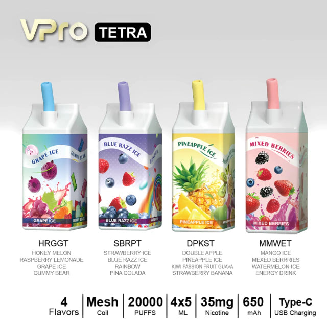 VPRO TETRA 20K Puffs | 4 Sabores en 1 Solo Vape en CDMX
